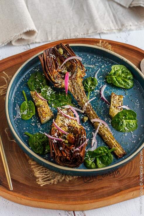 Этот распространённый рецепт позволяет полностью раскрыть деликатный аромат и свежий вкус артишоков, запекая их в духовке.