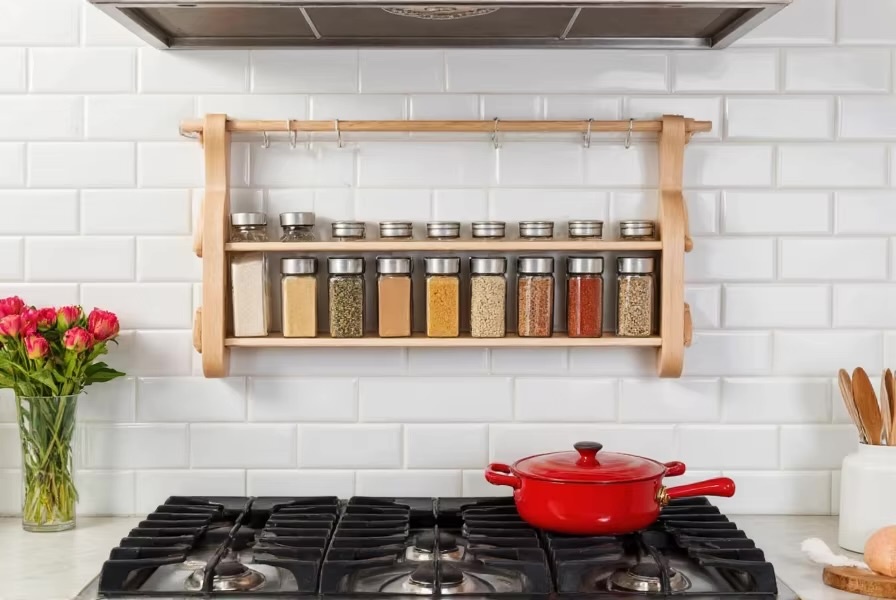 Открытые стеллажи могут выглядеть эстетично, но это не лучшая идея для хранения специй.