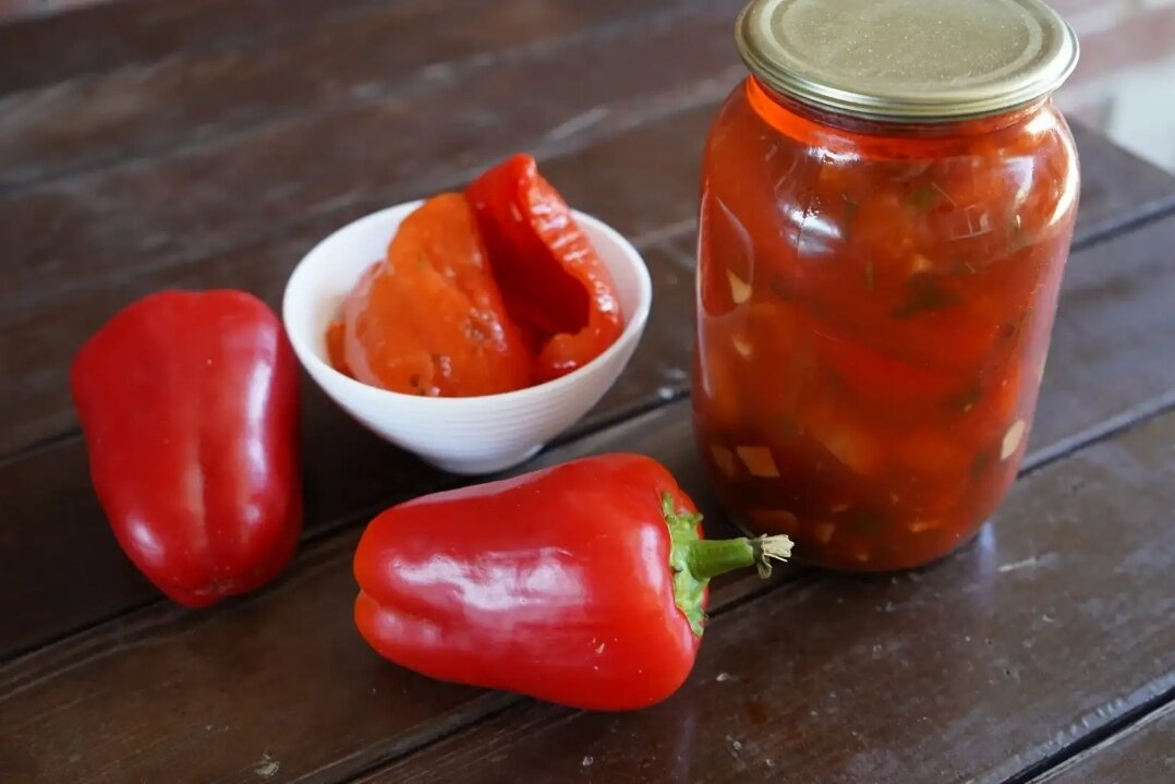 5. Залейте перцы кипящим томатным соусом, закройте крышками и стерилизуйте. После стерилизации банки герметично закройте и переверните для остывания.