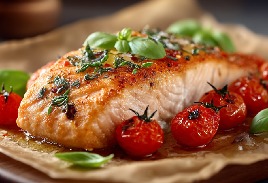Ключевое правило этого метода — медленное запекание при низкой температуре и короткий этап маринования. Этот подход помогает раскрыть насыщенный вкус горбуши без добавления чрезмерного количества масла. Рыбу укладывают на пергамент, добавляют ароматные помидоры черри и свежий базилик, а также неожиданный компонент — светлую мисо-пасту. Этот ингредиент усиливает вкусовые качества рыбы и удерживает влагу, не забивая её натуральный аромат.