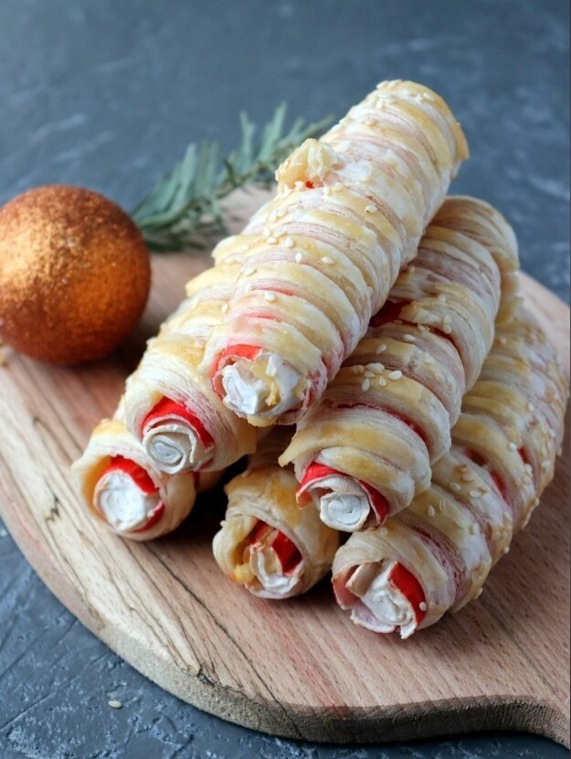 Крабовые палочки с сыром в слоеном тесте: новый уровень закуски