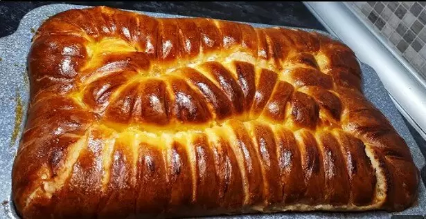 - Ингредиенты для теста: молоко (100 мл), кефир (100 мл), сода (0,5 ч. л.), растительное масло (0,5 стакана), яйцо (1 шт.), сахар (3 ст. л.), дрожжи (1 ч. л.), соль (0,5 ч. л.), мука (450-500 г).