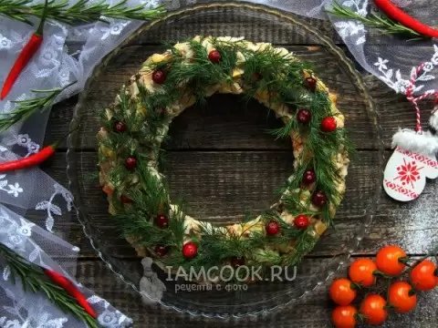 Салат «Рождественский венок» с сушеными грибами и курицей