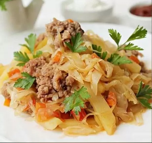 Ароматная тушеная капуста с картофелем и фаршем для домашнего ужина