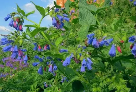 Окопник легко узнаваем благодаря своим толстым стеблям, достигающим высоты до 1,2 м, и крупным листьям длиной до 15 см, которые расположены поочередно. Стебли и листья покрыты шершавыми волосками, придающими растению характерный вид. Корневище окопника проникает в землю до 50 см, что помогает ему успешно зимовать и активно размножаться. Оно покрыто темной корой и имеет белую, сочную мякоть на разрезе. Окрас цветков варьируется от синего до фиолетового, а плоды-зерна созревают к сентябрю. В народной медицине применяется только один вид — окопник лекарственный, хотя в этом роде насчитывается 19 различных видов, отличающихся по характеристикам.