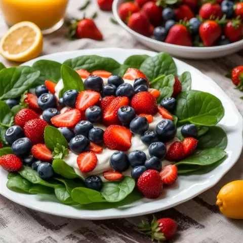 Сладость и кислинка ягод идеально сочетаются в этом освежающем салате. Этот рецепт легко готовится и идеально подходит как для праздничного стола, так и для повседневного обеда.