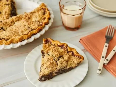 Теперь пришло время собрать пирог. Сначала посыпьте начинку крошкой, равномерно распределив ее по поверхности. Далее поместите пирог на противень и выпекайте в заранее разогретой до 200 градусов Цельсия (400 по Фаренгейту) духовке в течение 15 минут. После этого следует снизить температуру до 175 градусов Цельсия и продолжать выпекать еще 30 минут.