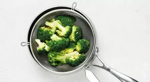 Чтобы приготовить вкусные вафли, прежде всего, необходимо разобраться с брокколи. Разделите её на мелкие соцветия и бросьте в кастрюлю с подсоленной водой. Варите не более 5 минут — соцветия должны стать мягкими, но не развариться. После этого откиньте их на дуршлаг и дайте стечь лишней воде.