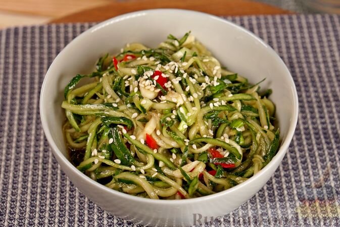 - Салат из огурцов по-корейски: Острая закуска, которая точно добавит огурцам новых вкусовых оттенков.