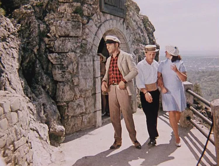 Известная сцена "возле Провала", где комбинатор продает билеты, была снята в гроте Лермонтова. Это место жизнерадостно привлекало поклонников великого поэта; в 1870 году здесь была установлена мраморная доска с его стихами, однако спустя время её сняли из-за неуместных добавлений прохожих и заменили на новую.