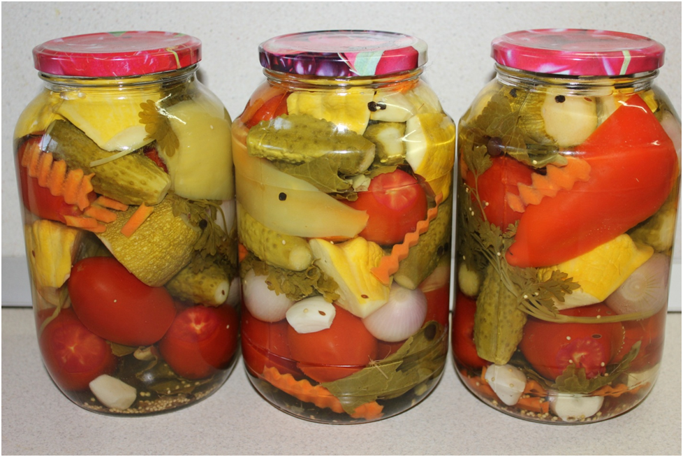 - Овощи: огурцы, помидоры, сладкий и острый перец, кабачки, морковь, лук и чеснок.