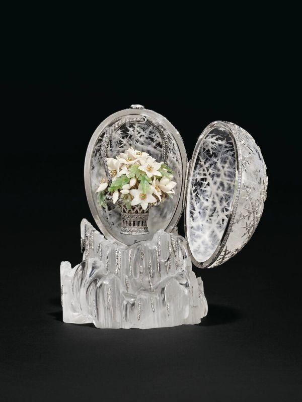 Среди наиболее заметных предложений вечера выделялось «Зимнее яйцо» образца 1913 года. Это произведение, выполненное из горного хрусталя и тщательно оформленное платиновыми снежинками с бриллиантами, стало настоящей находкой для настоящих ценителей. Яйцо было создано Альмой Пиль по заказу императора Николая II в качестве пасхального подарка для его матери, Марии Фёдоровны. Лот ушёл с молотка за впечатляющую сумму в ?22 895 000, включая все сборы.