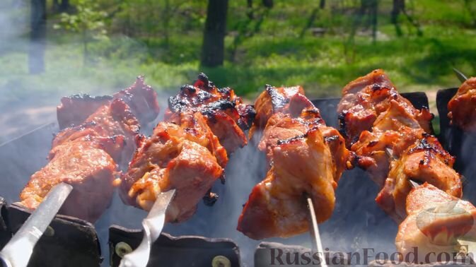 - Шашлык из свинины – классика жанра. Благодаря жировым прослойкам мясо всегда получается влажным и нежным, особенно когда его маринуют в смеси из лука и томатного сока.