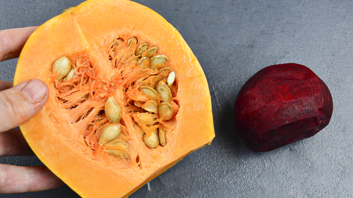 Главное в этом рецепте – правильно подобрать ингредиенты. Используйте сладкую тыкву и сахарную свеклу: свежесть и качество овощей влияют на итоговый вкус на 70%. Перед началом готовки необходимо очистить тыкву от кожуры и избавиться от семян, нарезав мякоть на кубики.