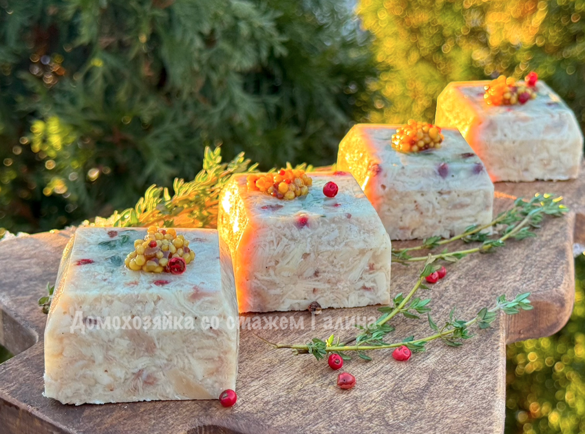 Как только зельц застынет, его можно выложить на блюдо и украсить по своему вкусу. Это блюдо прекрасно сохраняет форму, не течет и красиво выглядит на праздничном столе. Результат порадует не только вас, но и ваших гостей!