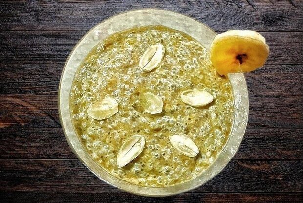 8. Теперь соедините банановую массу с набухшими семенами чиа, перемешайте до равномерного распределения.