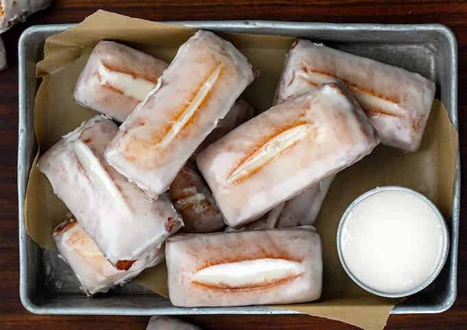 Что касается глазури, в большой миске соедините сахар, глюкозный сироп, ваниль, соль и молоко, перемешивая до однородности. Добавьте молоко по необходимости, чтобы достичь нужной консистенции.