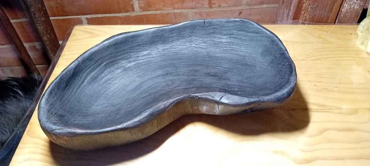 Для финишной обработки использовались льняное масло и воск, которые не только подошли по цвету, но и подчеркнули текстуру материала. Каждый элемент этой тарелки привносит свою особую атмосферу и завершенность в конечный результат.