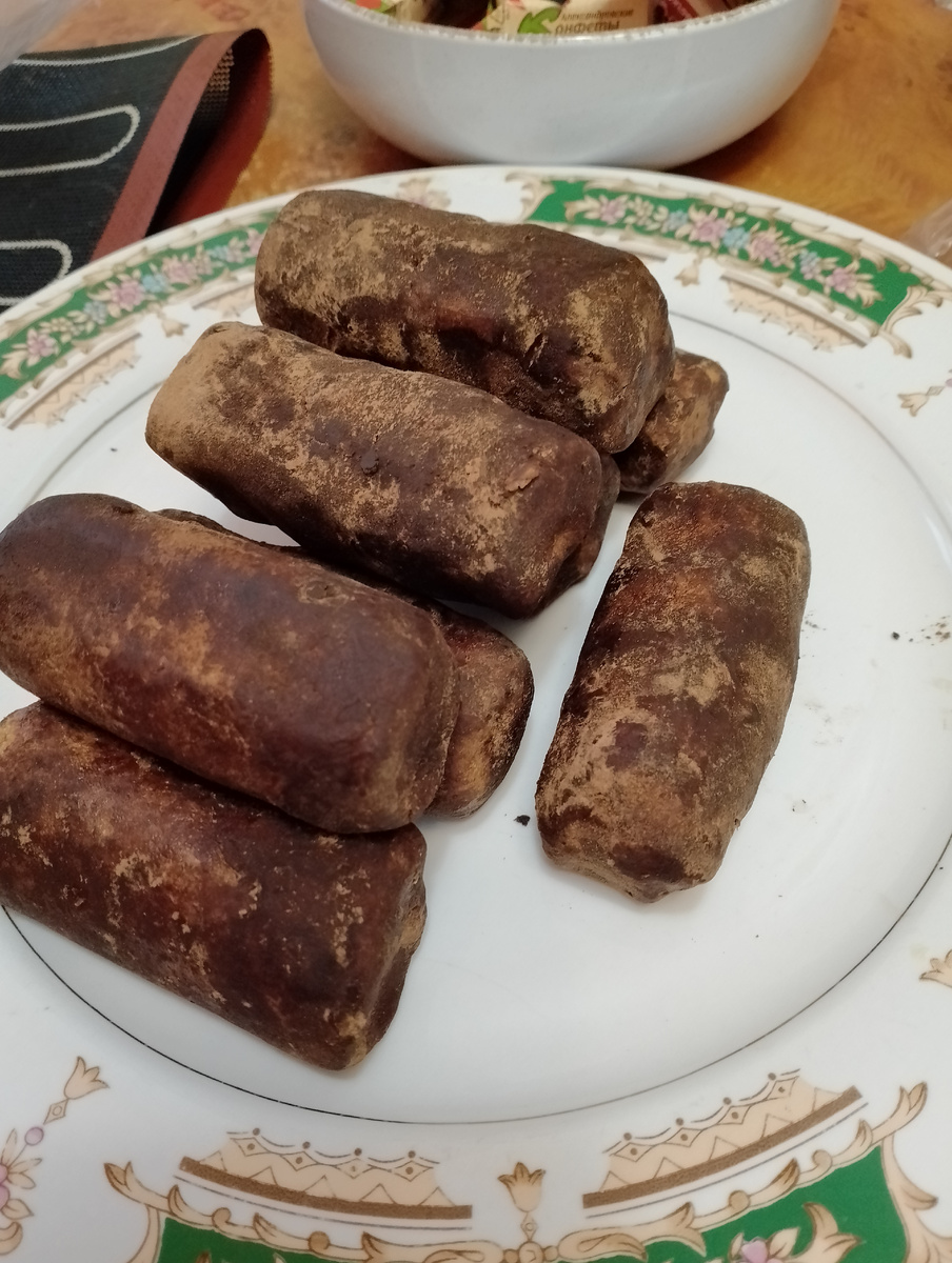 Время формировать «картошку»! Выбирайте любую форму, которая придет на ум, и начинайте лепить. Не забудьте обвалять получившиеся сладости в сухом какао, придающем законченный вид. Готовые изделия рекомендуется убрать в холодильник, чтобы масло немного охладилось и «картошка» держала форму.
