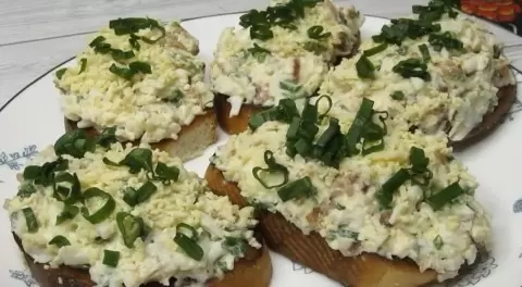 Готовую намазку следует выложить на тёплый хлеб, и всей семье уже не удастся устоять перед её вкусом. Этот завтрак ненадолго исчезнет с тарелок, и вскоре станет любимым ритуалом утреннего застолья!