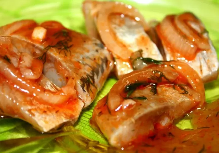 Скумбрия с луком в томатно-пряном маринаде
