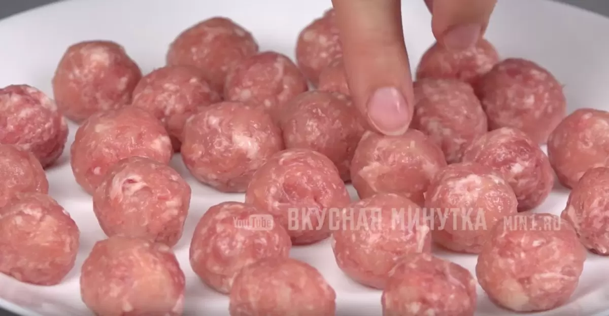 Начните процесс с создания фрикаделек. Для этого можно взять любой мясной фарш, но идеальным вариантом считается смешанный, например, свинина с куриным мясом. В него добавляют лишь соль и черный перец по вкусу.