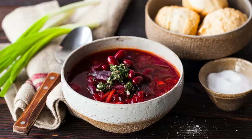 Настоящая изюминка этого рецепта заключается в специальной чесночно-укропной заправке, которая придаёт блюду невероятный аромат. А фасоль и картофель делают борщ незаменимым для тех, кто ищет сытное и полезное блюдо. Подавать его лучше всего настоянным, так что дайте ему постоять на теплой плите или в выключенной духовке.
