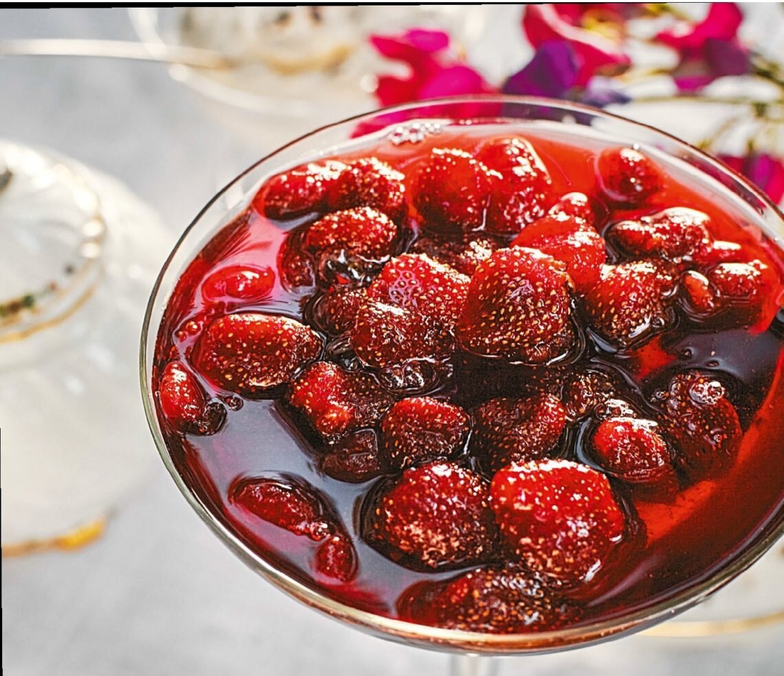 2. Удалите чашелистики и разрежьте ягоды пополам. Смешайте клубнику с сахаром и лимонным соком. Из стручков ванили используйте только сердцевину, добавив ее к основной массе. Перемешайте все ингредиенты и оставьте смесь на 6 часов для настаивания.