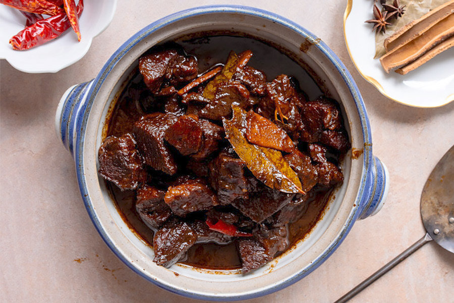- 900 г говядины, подходящей для тушения