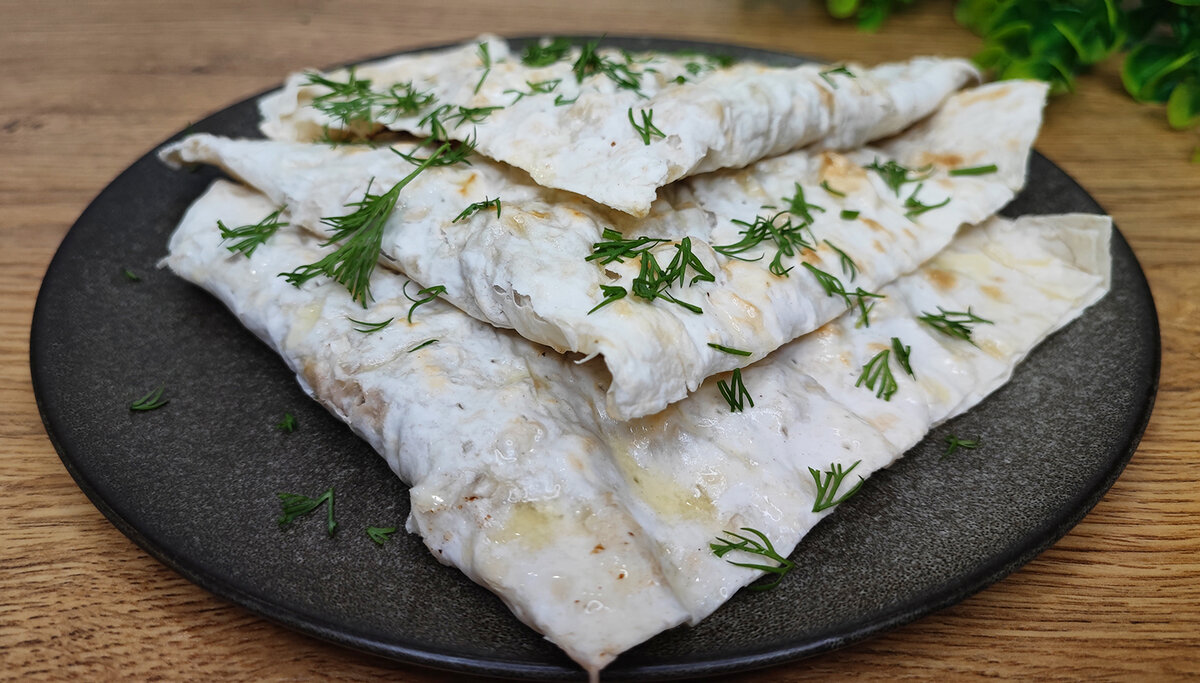 Ленивые чебуреки жарятся на сухой сковороде с обеих сторон по 3-4 минуты на низком огне. После того как они подрумянятся, поверхность смазывают сливочным маслом, придавая дополнительный аромат и вкус. Готовые чебуреки можно подавать к столу, украсив укропом.