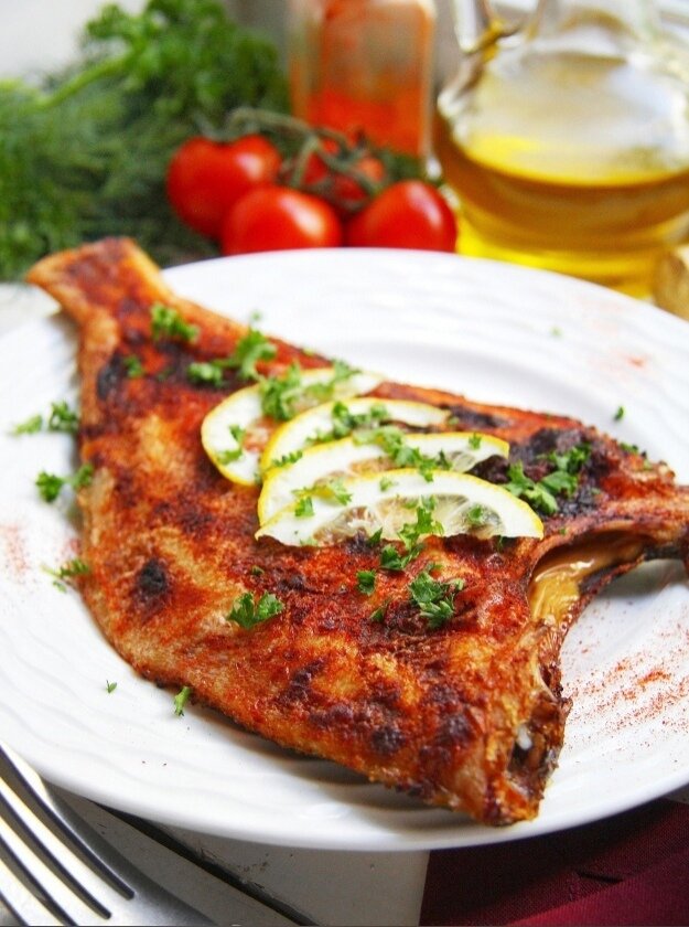 Сухую копченую паприку следует посыпать на камбалу, придавая этому блюду легкий дымный аромат.