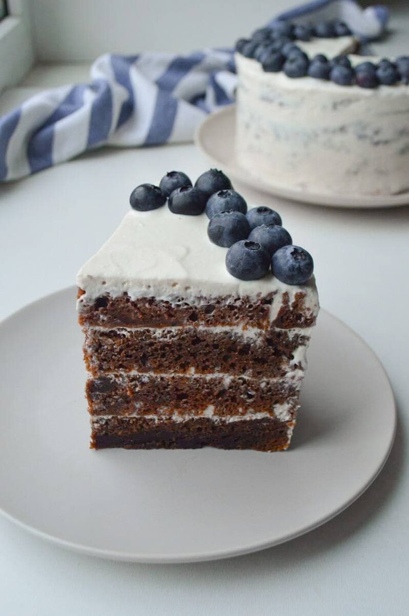 9. Перед подачей оставшимся кремом можно покрыть верхушку торта, при желании украсив крошкой из срезанной верхушки коржа.